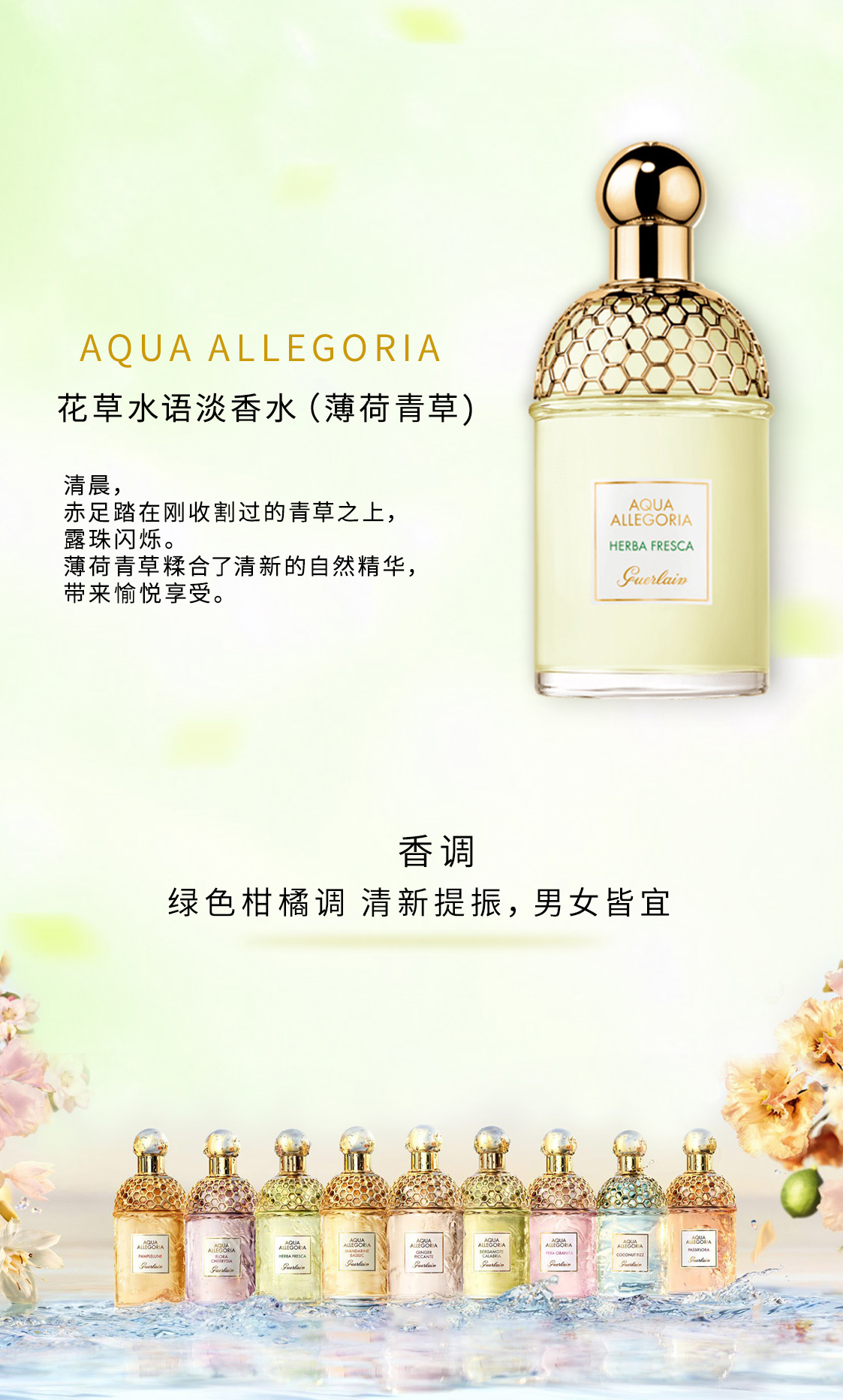 清晨,赤足踏在刚收割过的青草之上,露珠闪烁。薄荷青草糅合了清新的自然精华,带来愉悦享受。纯净精致的瓶身,饰以镂空金色网纹,向富有盛名的“蜂姿瓶”致敬。