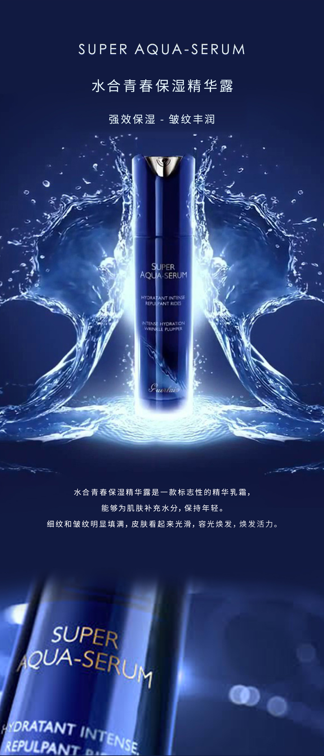 水合青春是法国娇兰的明星系列,随着升级配方的融入,不仅能保持肌肤水源的纯净,与上一代相比,其保水力更显著升级,抗皱减纹功效尤胜以往。 水合青春保湿精华露,是水合青春保湿系列当之无愧的口碑明星,其不仅能有效增强肌肤锁水力,更令肌肤满饮清润,层层淡褪干纹细纹,重焕弹润光滑年轻。